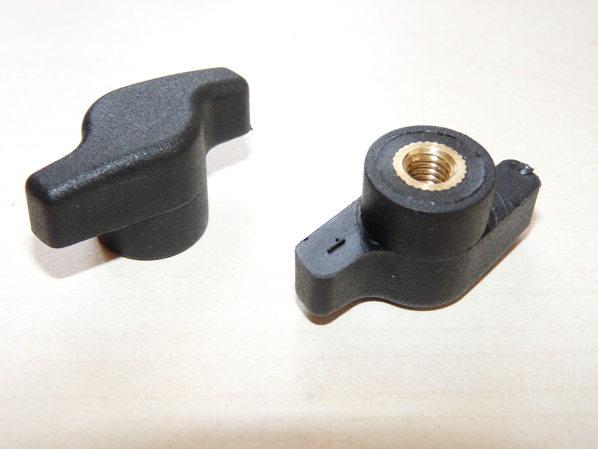 Zwei Flügelmuttern zu Fussstützen von Pyranha- und anderen Booten mit M6 Gewinde.